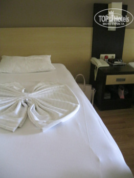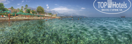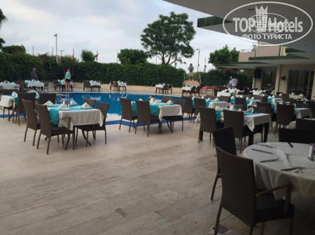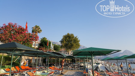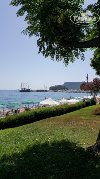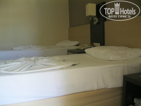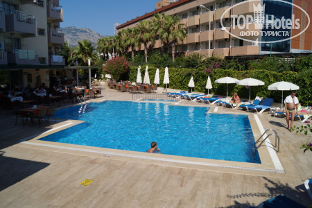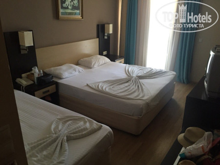 Были в сентябре, парой. Расположение отеля прекрасное, все рядом. До пляжа идти минуту, до порта неспешно 5 мин, ближайший Мигрос- минут 6-7, до Белой башни 10 мин. Заселение в 14:00, приехали раньше, сразу браслеты и т.д. Ресепшен работает отлично, проблемы решаются. Бесплатный интернет в лобби( не очень), платный работает неплохо на территории и на пляже. Номер 114, вид на горы и на море. Немного подуставший, смешной телевизор, холодильник норм, сейф в наличии, сантехника норм( в номере ванная). Питание не особо поражает разнообразием и изобилием, но добротное. Правда перед началом приема пищи, как правило очереди( кстати, заметил для нас новое- занимают столики с утра, как лежаки, резервируют так сказать.. так и лежат на столах книжки, панамки, очки,и т.д.) Бар работает хорошо, напитки нормальные. Питьевая вода в кулере неподалеку, там же соки и кофе. Пляж узенький...Есть платный бар, спасатель, туалет, душ. Лежаки уставшие, после 7:00 найти можно, но сложно) В основном возрастные отдыхающие, а встают они рано))) Море очень чистое(в Чамьюве такого не было) и теплое, в последние два дня штормило. В завершении : да, здесь нет пополняемых микромыл,минишампуней,тапочек, чайных принадлежностей, старенький телевизор.. Но нам он понравился, домашний, ненавязчивый, тихий.