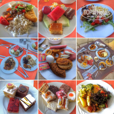 Питание нормальное, разнообразное. Еды хватает. Достаточно фруктов и овощей. Рыба, кура, баранина, говядина. Десерты как и везде, 5-7 видов. Пиво, ракия, джин, водка, содовая, белое красное вина, фанта и кола в баре с 10 утра до 11 вечера.